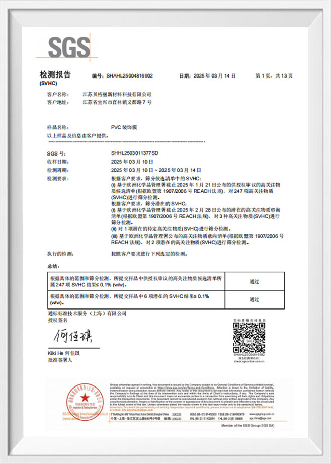 特殊コーティングの耐変色性 SGS
