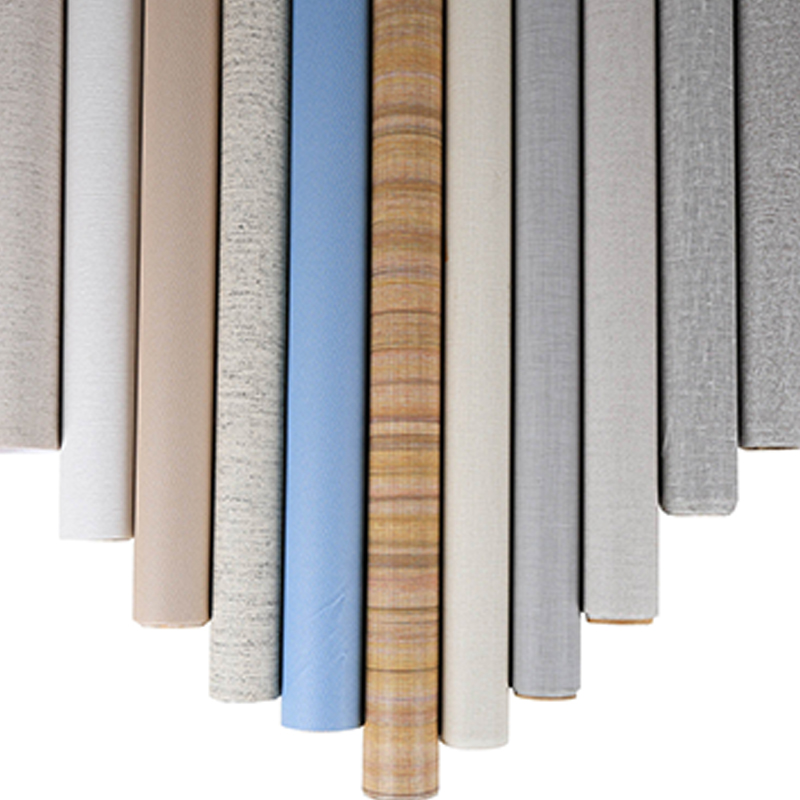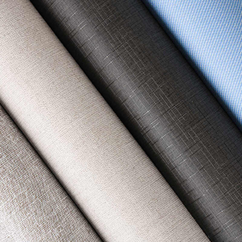 エンボス加工と表面処理により布地の質感を再現した塩ビ系フィルムで、厚さ0.1~0.6mm、幅1000~1420mmです。汚れ、摩耗、曲がりに強く、家具の表面、壁材、室内装飾の下地に最適で、触感の美しさと実用的な耐久性を兼ね備えています。