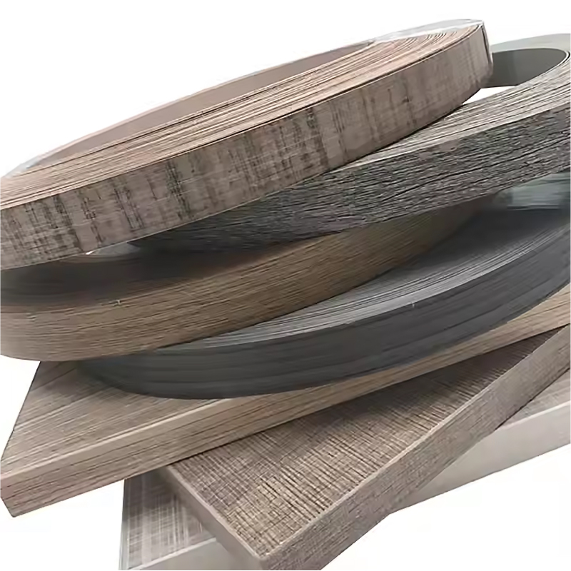 木目調 PVC エッジ バンディングはポリ塩化ビニル (PVC) をベースとしています。グラビア印刷や熱転写技術により自然な木目の質感を再現し、押出成形技術と組み合わせて作られています。厚さは0.35~1.2mm、幅は12~60mmです。高いシミュレーション性、耐摩耗性、耐候性を備えています。家具パネルのエッジバンディングや内装、特注キャビネットのエッジ処理に適しています。さまざまな木目調の色を提供し、RoHS/REACH 環境保護基準に準拠しています。